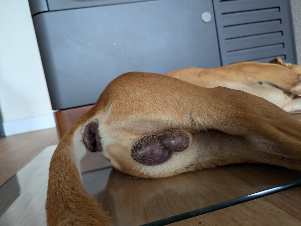 One of my male dogs was given to a neighbor for our four-week vacation. (When he was handed over, he had two testicles of the same size). This dog is incredibly affectionate and fixated on me