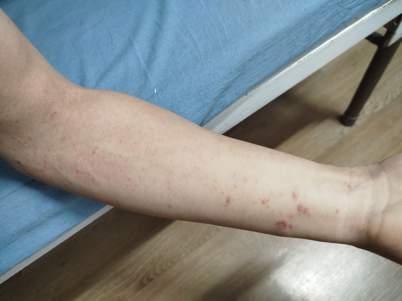 Severe itching between little toes after stepping on a slug.